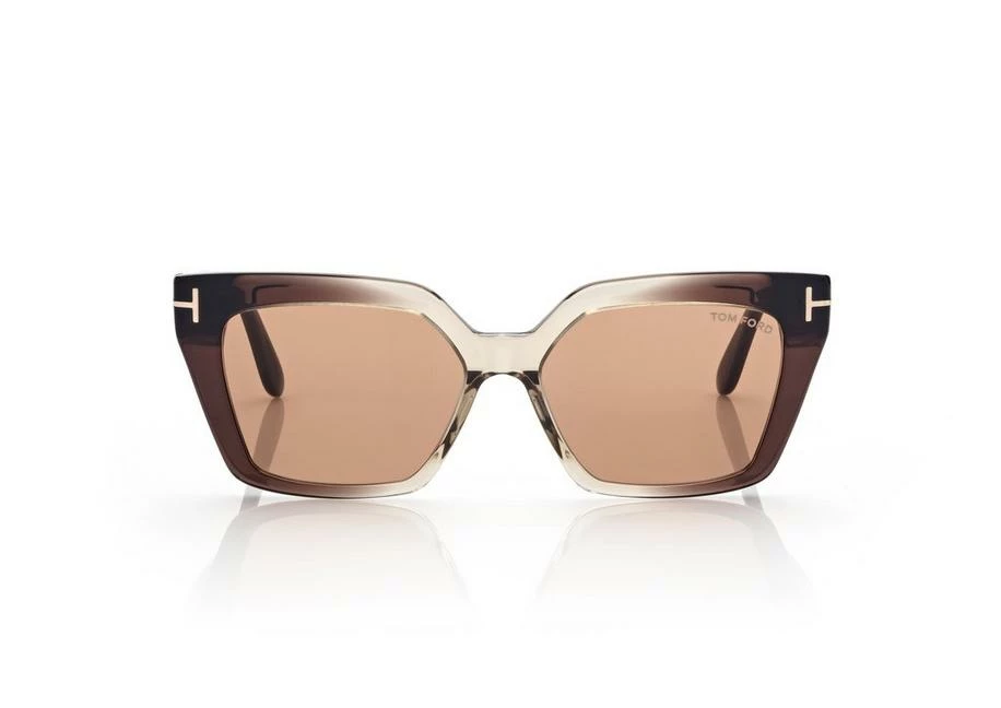 Stylish cat-eye acetate frame with contemporary minimalist design and characterized by metal T logo decoration