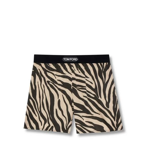 TOM FORD ZEBRA PRINTED SILK BOXER SHORTS – BLACK + BEIGE